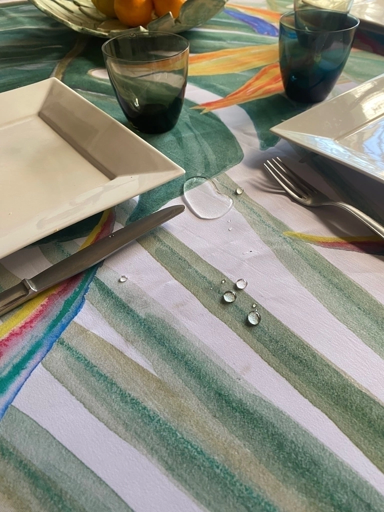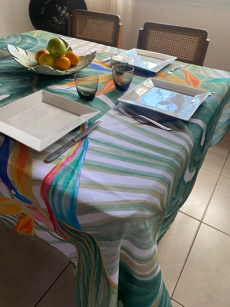 Manteles estampados en tela repelente a líquidos y cuerina plavinil.