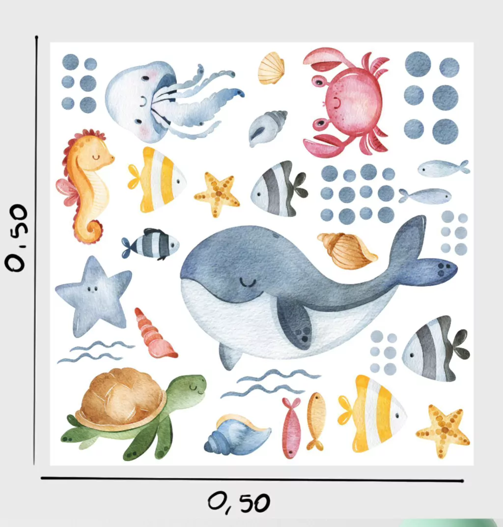 BALLENA, CANGREJO Y CABALLITO DE MAR 50 cm x 50 cm