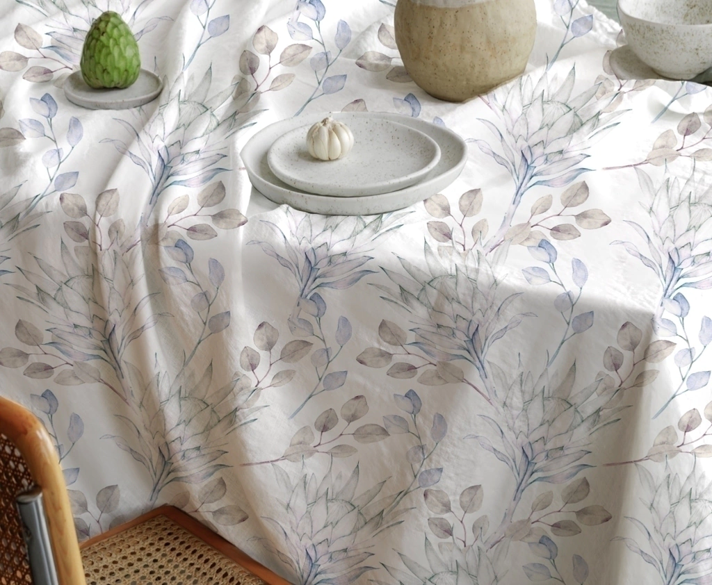 Manteles estampados en tela tropical repelente. (Tela repelente a líquidos).
