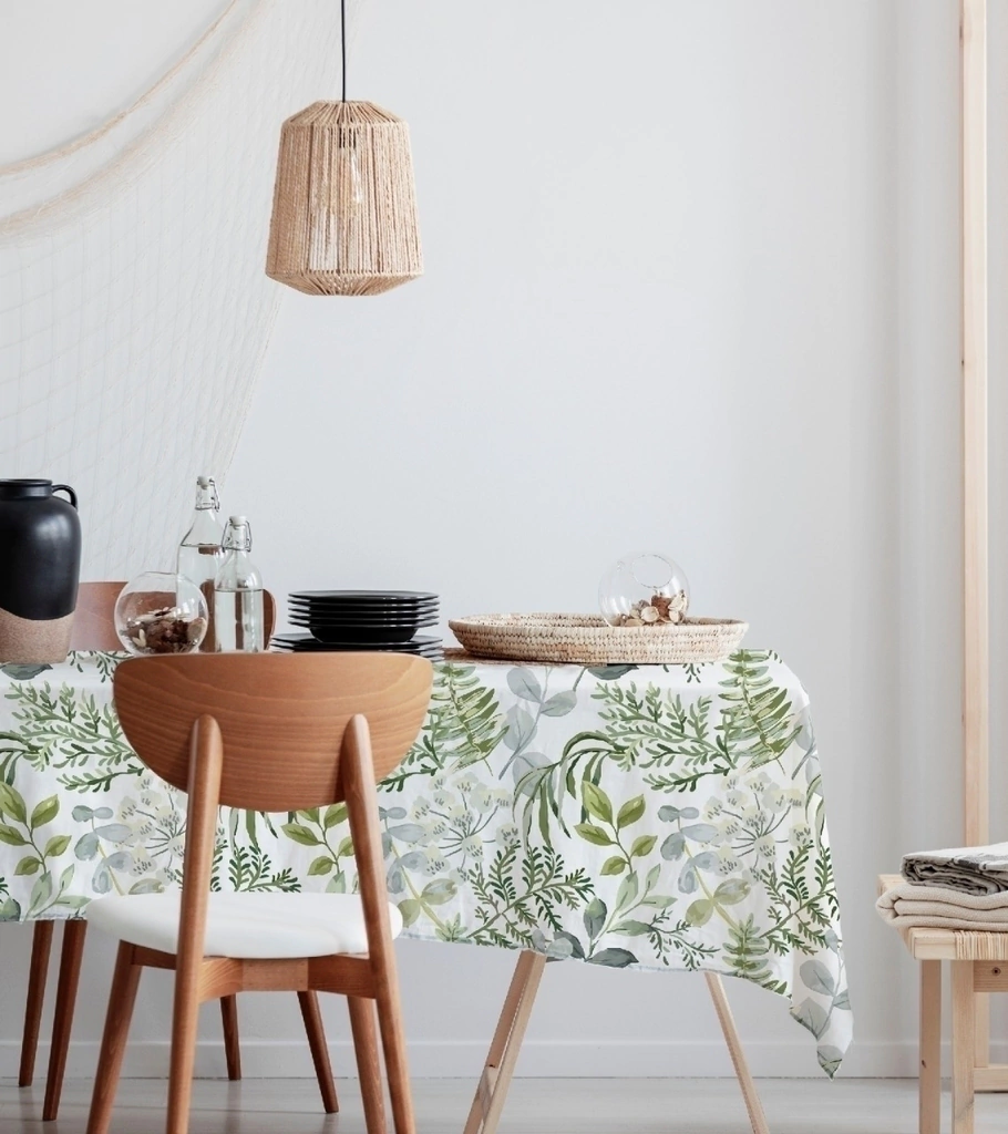 Manteles estampados en tela tropical repelente. (Tela repelente a líquidos).