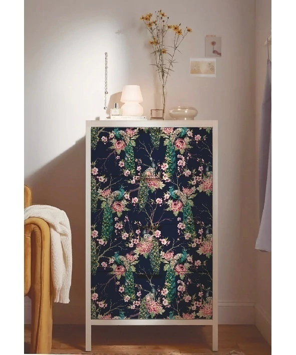 Las láminas autoadhesivas son de vinilo con base blanca, ideal para decorar muebles, paredes, vidrio, plástico o cualquier superficie lisa, dura y no porosa. Su acabado permite una aplicación sencilla y un aspecto uniforme en distintos ambientes.