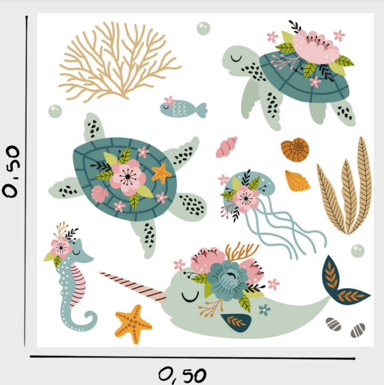 TORTUGA DE MAR Y MEDUSA 50 cm x 50 cm
