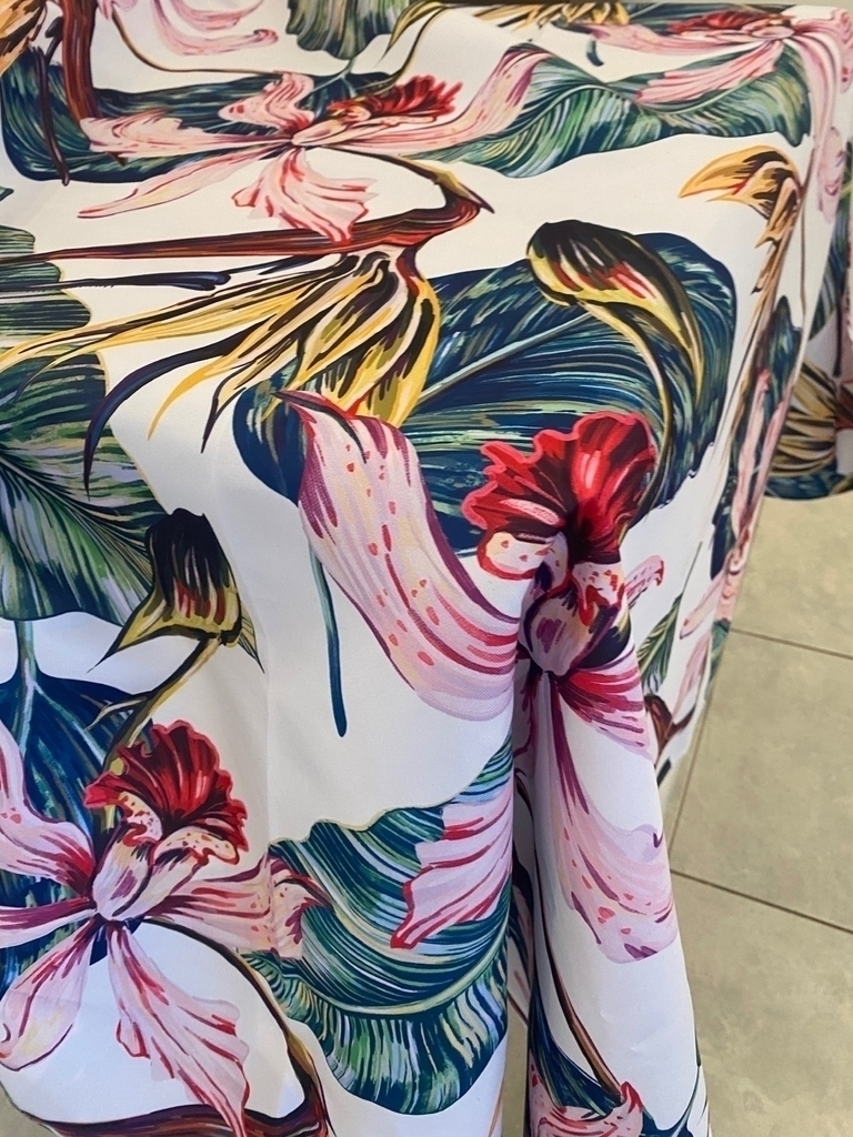 Manteles estampados en tela repelente a líquidos y cuerina plavinil.
