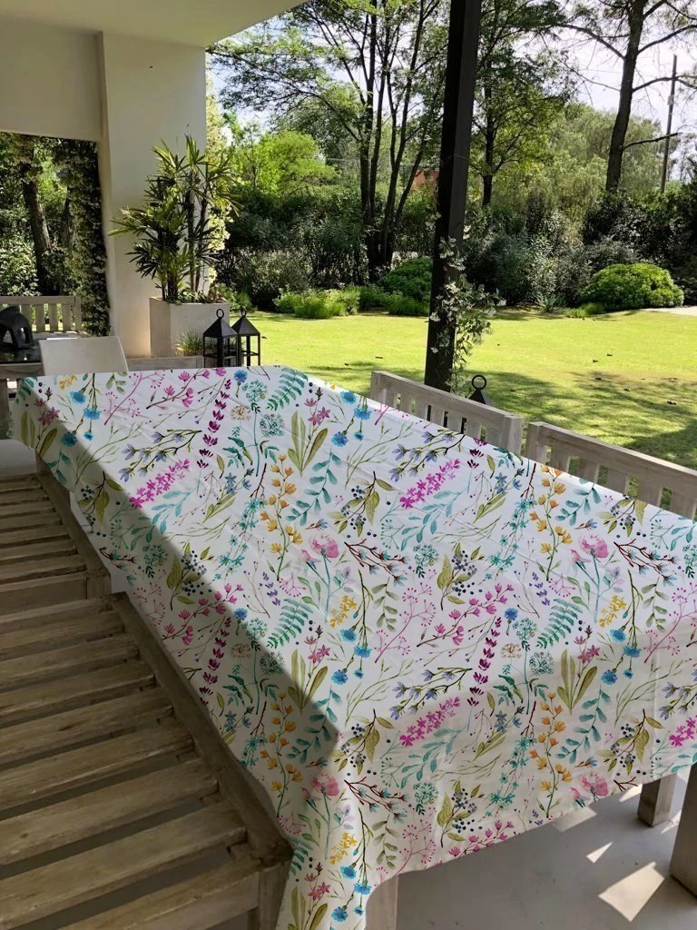 Manteles estampados en tela repelente a líquidos y cuerina plavinil.